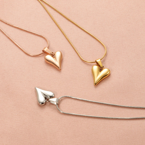 Regalo de joyería romántica elegante collar con colgante de corazón delgado de acero inoxidable chapado en oro de 18 quilates para mujer