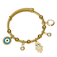 Pulsera elástica ajustable con ojos azules para mujer, pulsera de Fátima tejida con cuerda de alambre de acero inoxidable